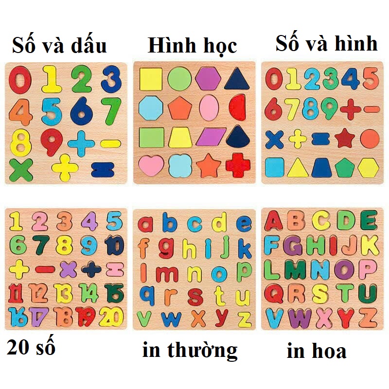 ✨Đồ Chơi Gỗ Cho Bé, Bảng Gỗ Nổi Vuông 20x20cm, Bảng Chữ Cái, Số Và Hình, Đồ Chơi Giáo Dục Sớm