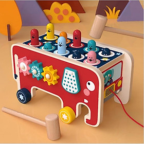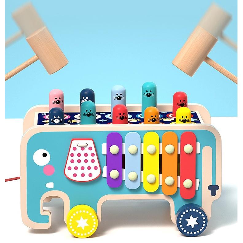 Đồ Chơi Đập Chuột Có Phát Nhạc Đồ Chơi Gỗ Hình Con Voi Kèm Đàn, Kèm Bánh Răng Xoay 3 in 1 Cho Bé