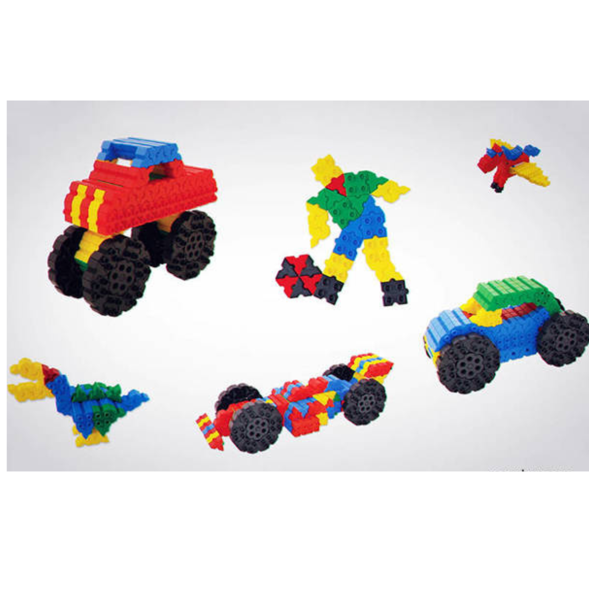 • Mô tả sản phẩm: gồm 1 hộp giấy Carton có nắp đậy tiện dụng để lưu trữ các chi tiết; 200 mảnh ghép đa chiều hình tam giác, hình vuông, các bánh răng và các thanh ghép hình trụ nhiều màu sắc; 1 cuốn sách/cuốn album hướng dẫn sử dụng đi kèm.