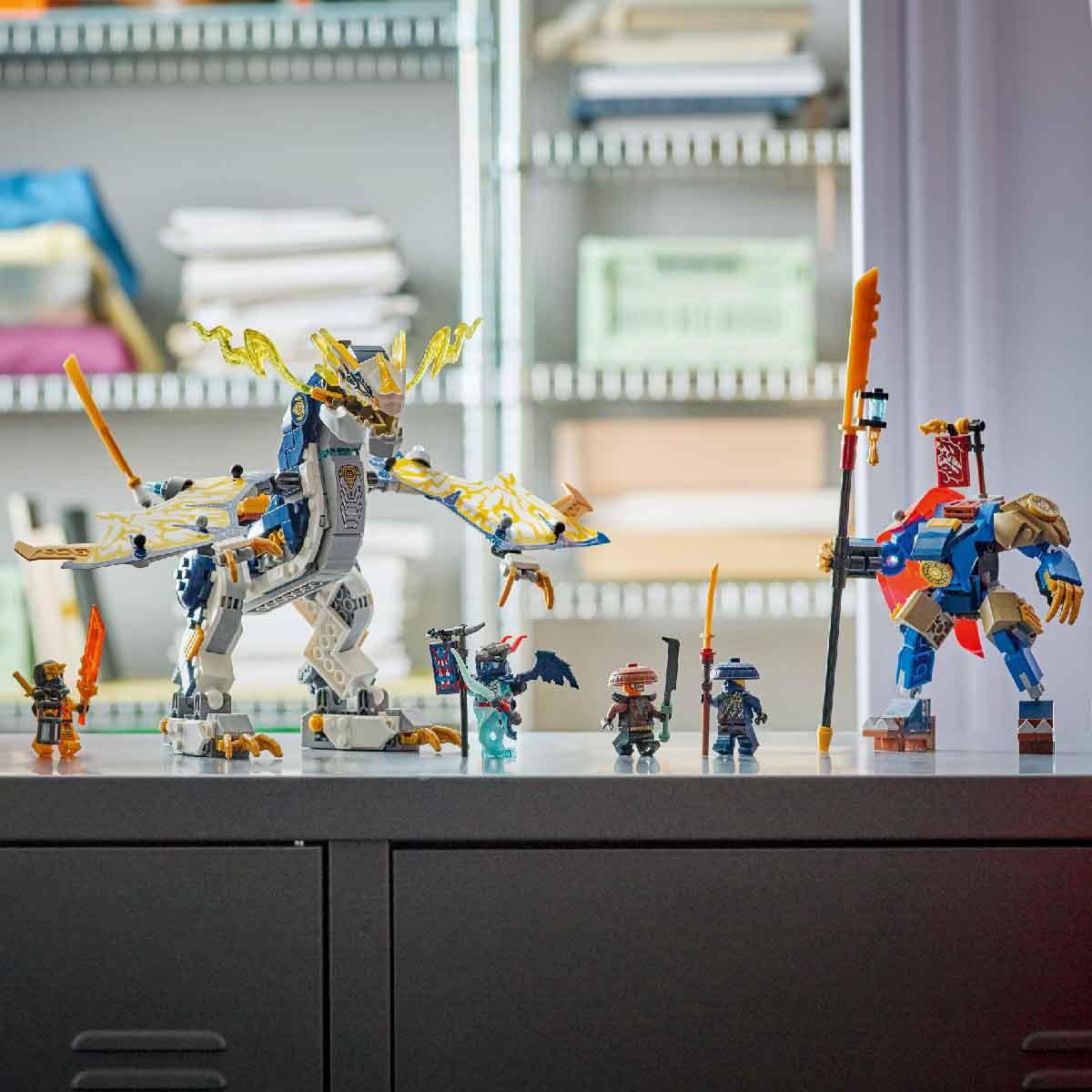 Bộ đồ chơi hành động NINJAGO gồm rồng robot đầu tiên và mô hình chiến giáp chiến đấu
