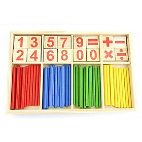 - Bao gồm: 24 ô vuông nhỏ in số số từ 0 đến 9 và các dấu cộng, trừ, nhân, chia, bằng; 04 ô đựng các que tính nhiều màu sắc - mỗi ô gồm 13 que tính. ***Xuất xứ: Trung Quốc