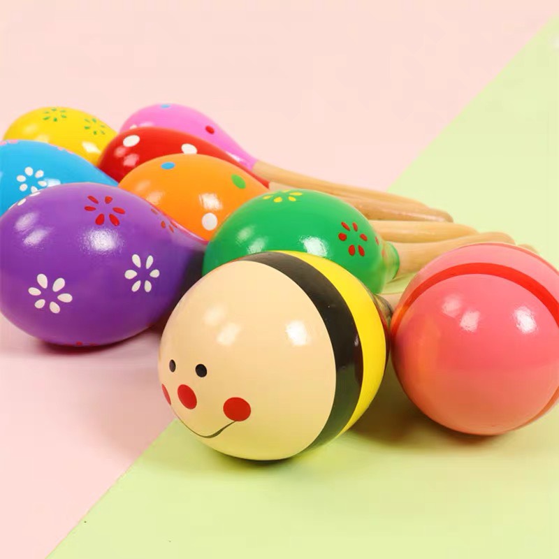Đồ chơi âm nhạc trẻ em LỤC LẠC ( XÚC XẮC ) chuôi gỗ nhiều màu phát triển cảm quan cho bé từ 0 tuổi