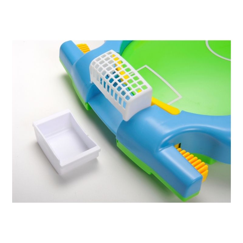 Hãy cùng bé tận hưởng niềm vui ngay tại nhà cùng Bộ Bóng Đá Dành Cho Bé. Bàn chơi bóng đá Hot nhất hệ Mặt Trời sẽ giúp bé hóa thân thành cầu thủ thực thụ, thực hiện những cú sút bóng và chặn bóng chuyên nghiệp. Từ giờ, bé yêu cùng bố mẹ và bạn bè có thể thỏa sức nhập cuộc vào những trận đá bóng gây cấn. Bé không những giải trí mà còn có thể luyện khả năng nhanh tay lẹ mắt, kích thích kỹ năng phản xạ, phát triển toàn diện cho bé. Bộ đồ chơi "bất chấp diện tích", dù nhà bạn rộng hay hẹp, dù phòng bạn nhỏ hay to, cả nhà đều có thể quây quần cùng con chơi vui thả ga mọi noi mọi lúc! Thanh tay cầm chắc chắn, có 2 nút bấm ở 2 bên mỗi tay cầm để cản bóng & sút bóng. 2 người chơi 1 lúc. Có nút xoay tính tỉ số mỗi bên. Điểm phát bóng (kick-off) để phân định đội nào giành lượt đá. Sản phẩm gồm: 1 bàn chơi đá bóng, 2 khung thành, 2 quả bóng .