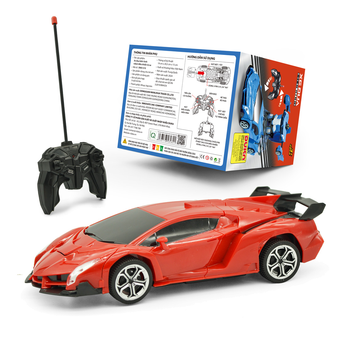 Đồ chơi xe điều khiển được thiết kế với mô hình xe đua, chất liệu hợp kim siêu bền, từ chiếc xe đua có thể biến hóa thành mô hình robot siêu chiến binh di