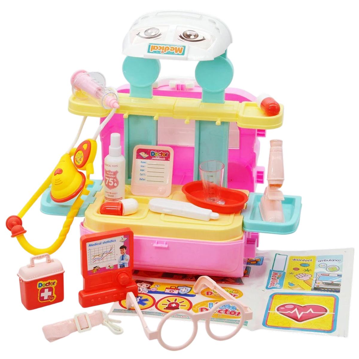 Bộ đồ chơi là sản phẩm đồ chơi trẻ em được thiết kế có mô hình chiếc xe ngộ nghĩnh, mô phỏng chiếc xe khám bệnh lưu động để phục vụ nhân dân ,..với nhiều chi tiết mô tả các dụng cụ khám chữa bệnh của bác sĩ, y tá.. màu sắc bắt mắt, kiểu dáng xinh xắn phù hợp cho cả bé trai và bé gái thỏa sức vui chơi, sáng tạo nhập vai thành người bác sĩ và cô y tá khám chữa bệnh cho các bệnh nhân. Bộ đồ chơi giúp trẻ nhận biết về sức khỏe, vệ sinh và định hướng nghề nghiệp trong tương lai.