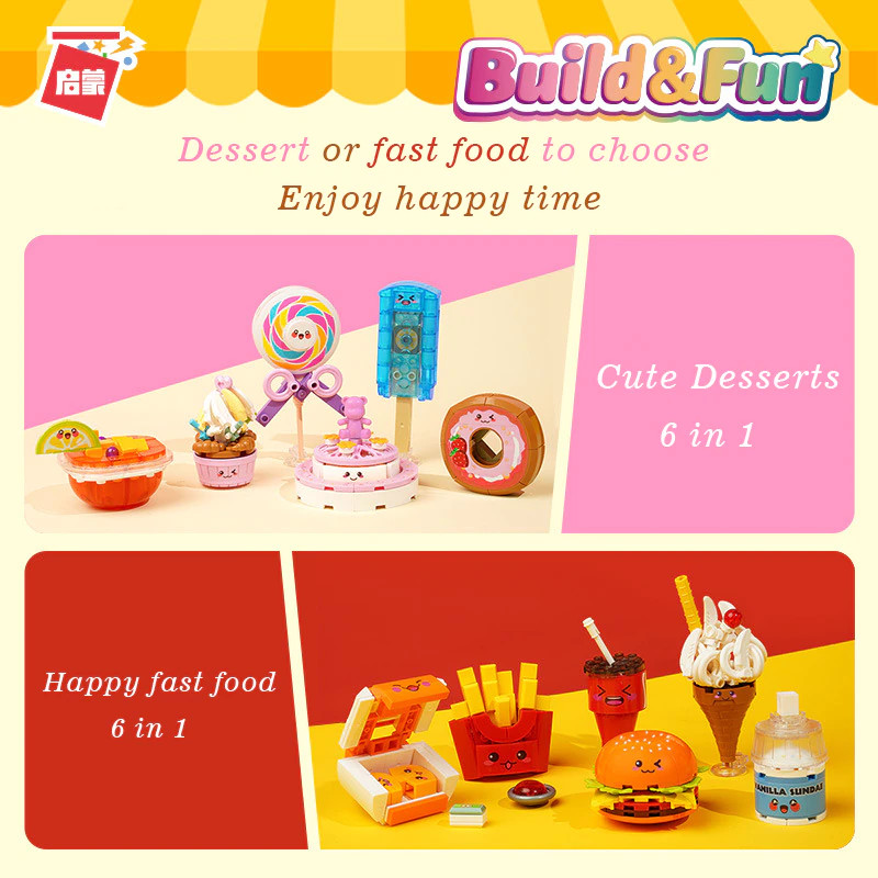 ✨Đồ chơi xếp hình, lắp ráp 6 in 1 Qman 35011 - Điểm tâm ngọt ngào