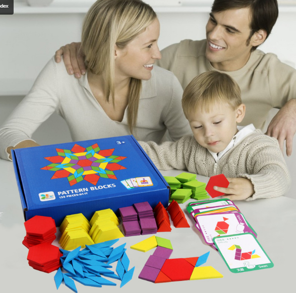 - Bộ Ghép Hình Sáng Tạo Pattern Block 155 Chi Tiết, đồ chơi gỗ, giáo cụ montessori, dành cho bé từ 3 tuổi trở lên, đồ chơi phát triển trí tuệ Bộ ghép hình Pattern Block là trò chơi kích thích trí tưởng tưởng phong phú và sáng tạo vô hạn của bé từ 3 tuổi. Từ các hình dạng đơn giản: tam giác, hình lục giác, hình thoi, hình thang...với trí tưởng tượng bé ghép lại thành bông hoa, chim cánh cụt, con bướm ,... 24 thẻ mẫu được chia thành các cấp độ khác nhau từ dễ đến khó, giúp trẻ dễ dàng làm quen với trò chơi, sau đó bé có thể tự sáng tạo ra các hình ảnh khác 100 % các bé phấn khích với trò chơi này, không những bé thích mà cha mẹ cũng rất mê.