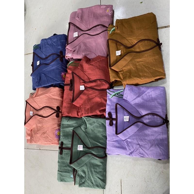 quần áo Phật tử cổ tàu cài chéo - đồ lam đi chùa Sen Hồng - set Phật tử nữ đẹp 0898553583