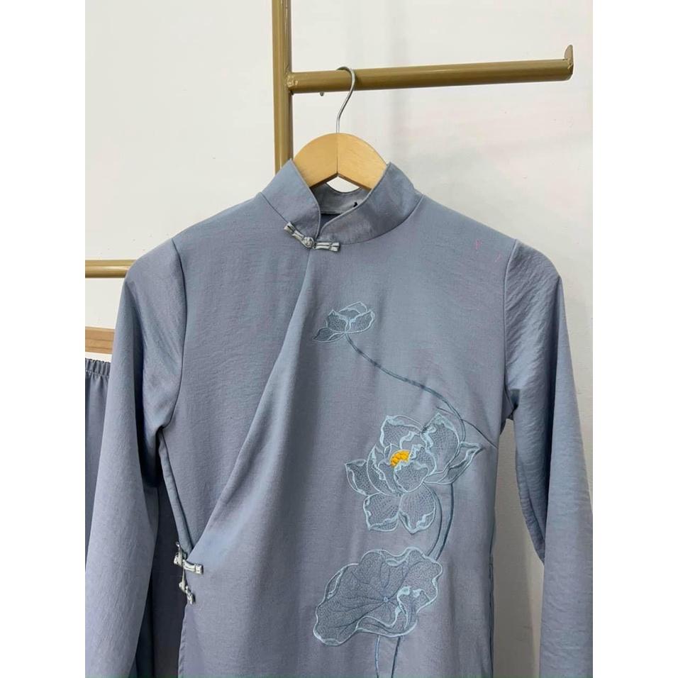 Quần áo phật tử đồ lam đi chùa mẫu xéo nơ An Yên