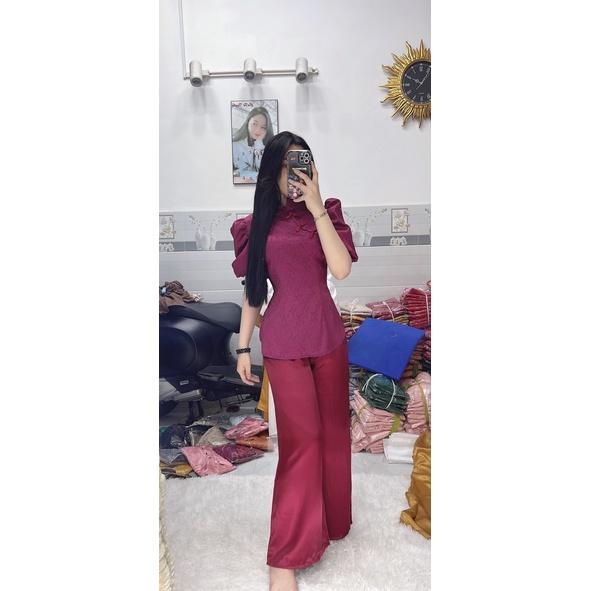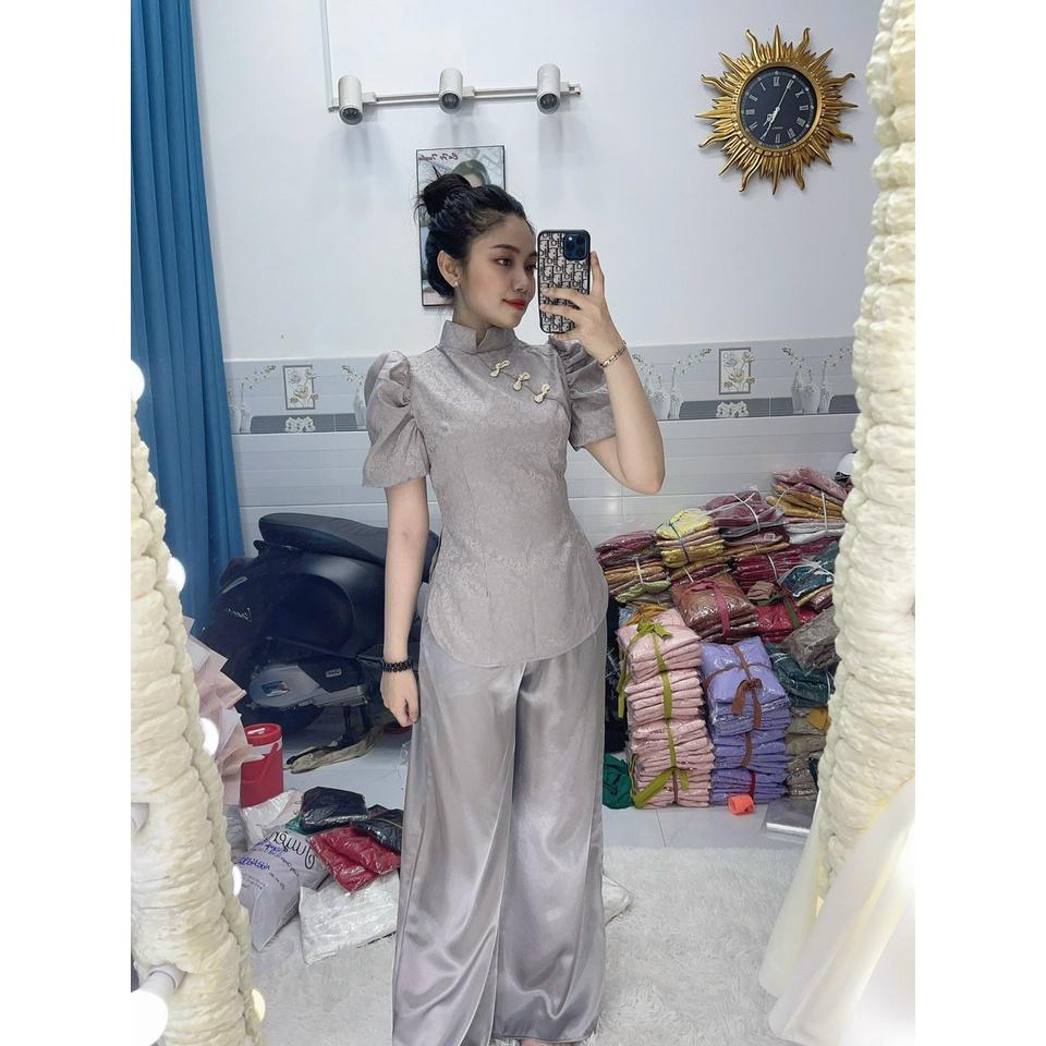 SET ĐỒ LAM ĐI CHÙA ÁO BÀ BA KÈM QUẦN DÀI CHẤT GẤM