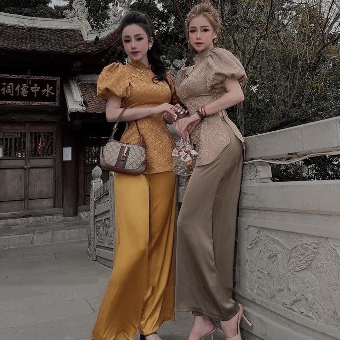 Quần áo phật tử, đồ lam đi chùa mẫu gấm xẻ tà #fashion #quanaophattu