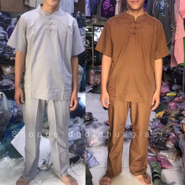 Quần áo phật tử, đồ lam đi chùa mẫu nam tay ngắn 3 nút #fashion #quanaophattu