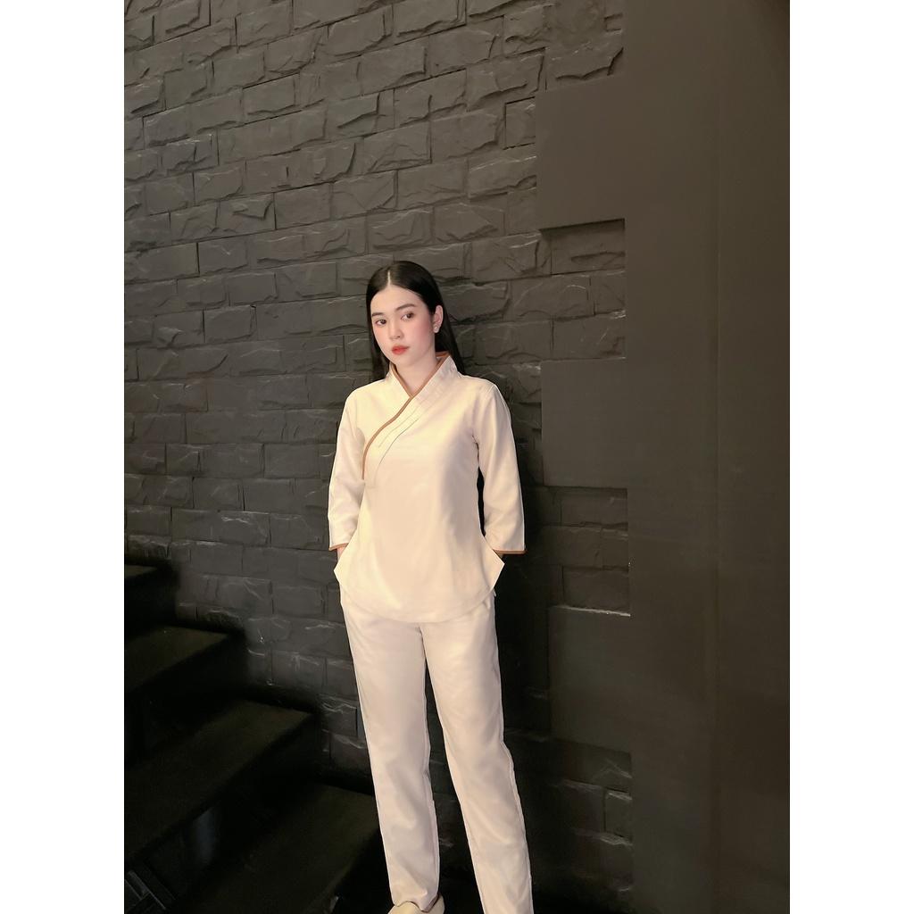 quần áo Phật tử cổ tàu cài chéo - đồ lam đi chùa Sen Hồng - set Phật tử nữ đẹp 0898553583