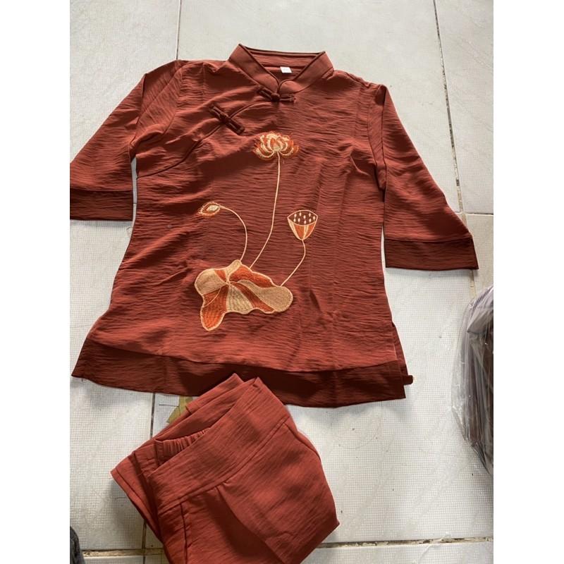 Mẫu pháp phục nữ - quần áo Phật tử đi chùa, đồ lam chất kate lụa mềm có co giãn Sen Hồng 0898553583