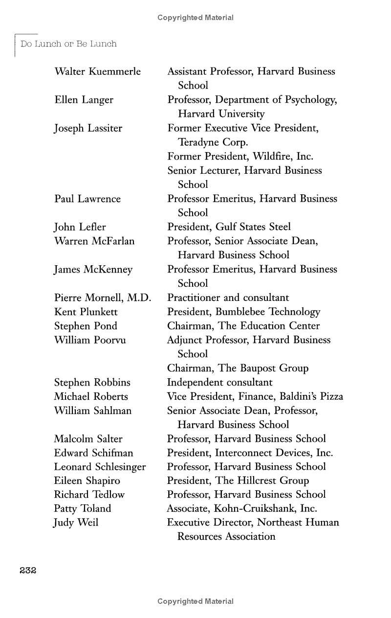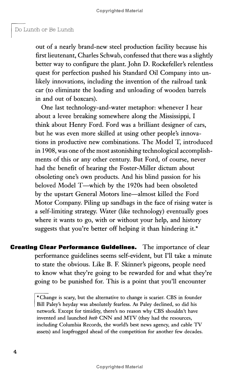Here is a refreshing antidote to the change manifestos and reinvention tracts that currently crowd the business bookshelves. Do Lunch or Be Lunch is a provocative argument for predictability as the most powerful of management tools.