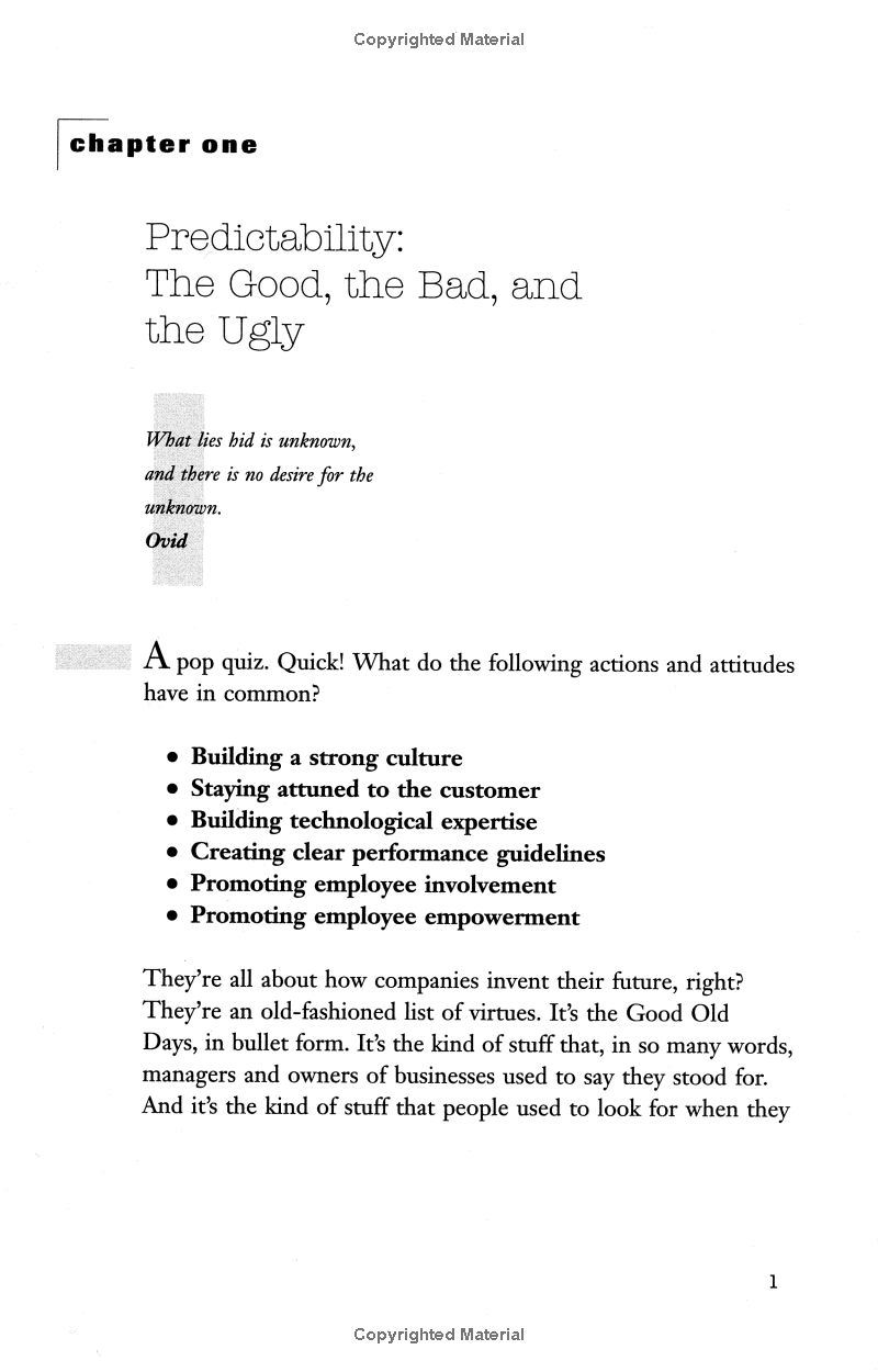 In a fresh and engaging style, Stevenson sounds the alarm on behalf of predictability. He shows how the deep need to predict and shape the future drives most of human behavior. Now, he argues, predictability is imperiled. This is true especially in business organizations, which undermine predictability when they arbitrarily dismiss employees or use self-interest as the basis for all decision-making. In fact, the organization that embraces predictability enhances its own effectiveness; by contrast, the company that thrives on unpredictability is not only inhumane, but also incompetent. Explaining that predictability and change are not mutually exclusive, Stevenson analyzes popular change programs like reengineering, continuous improvement, and restructuring as he makes a powerful case for understanding and preparing for the consequences of change before setting it in motion.