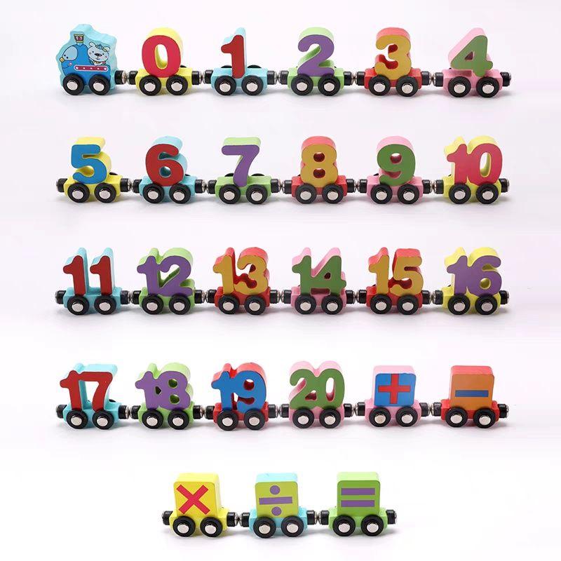 ✨Đoàn tàu kéo số và chữ nam châm, Đồ chơi gỗ giáo dục phát triển trí tuệ cho bé