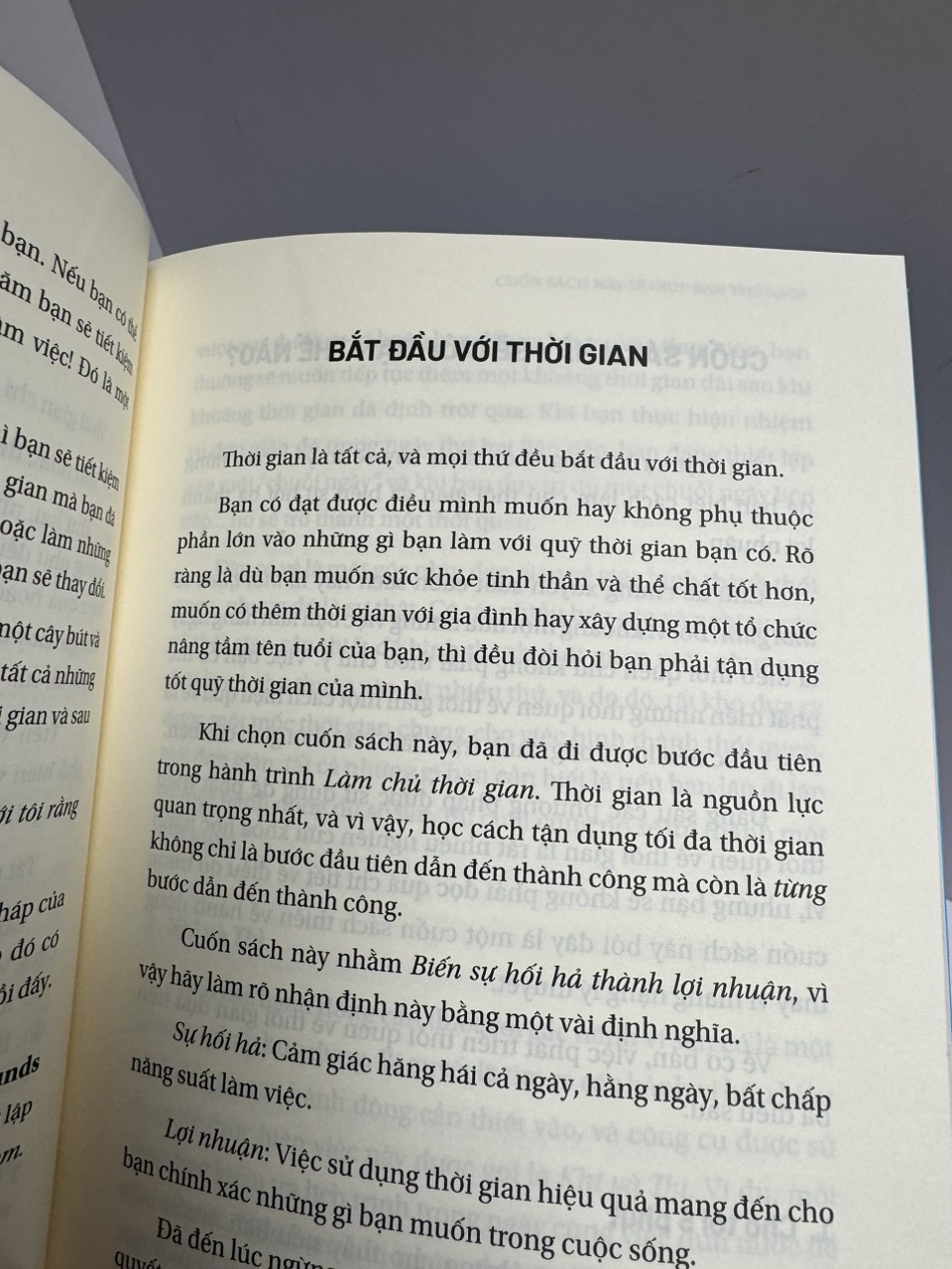 Cuốn sách này sẽ thay đổi cuộc đời bạn. Nếu bạn có thể tiết kiệm được 1 tiếng mỗi tuần thì mỗi năm bạn sẽ tiết kiệm được khoảng 50 giờ - tức là một tuần làm việc! Còn nếu tiết kiệm được 2-3 tiếng một tuần thì bạn sẽ tiết kiệm được 2-3 tuần mỗi năm. Đây chắc hẳn là thời gian mà bạn đã dành để tham gia các cuộc họp nhàm chán hoặc làm những việc không cần thiết.