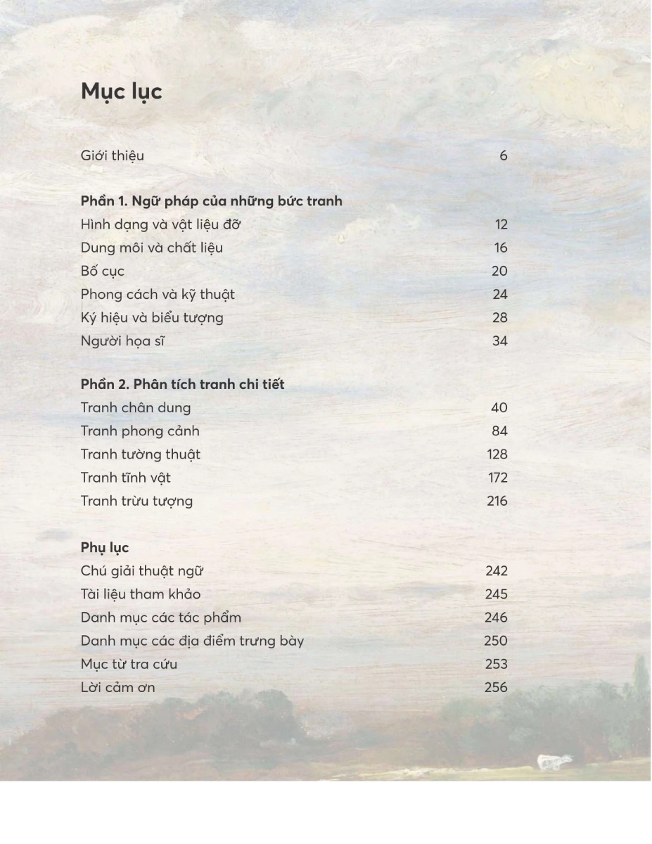 Cuốn sách là nguồn tư liệu cần thiết cho các độc giả mong muốn nắm được ngôn ngữ biểu đạt của những bức tranh, giúp họ có trải nghiệm tốt hơn khi tiếp xúc và tìm hiểu về hội họa. Dựa trên cơ sở cho rằng hội họa có một cách thức giao tiếp riêng biệt với người xem, tác giả phân tích ngữ pháp, từ vựng của những bức tranh, cung cấp cho độc giả bộ công cụ để khi đứng trước một tác phẩm, họ có thể trả lời câu hỏi: Tác phẩm này muốn nói điều gì?