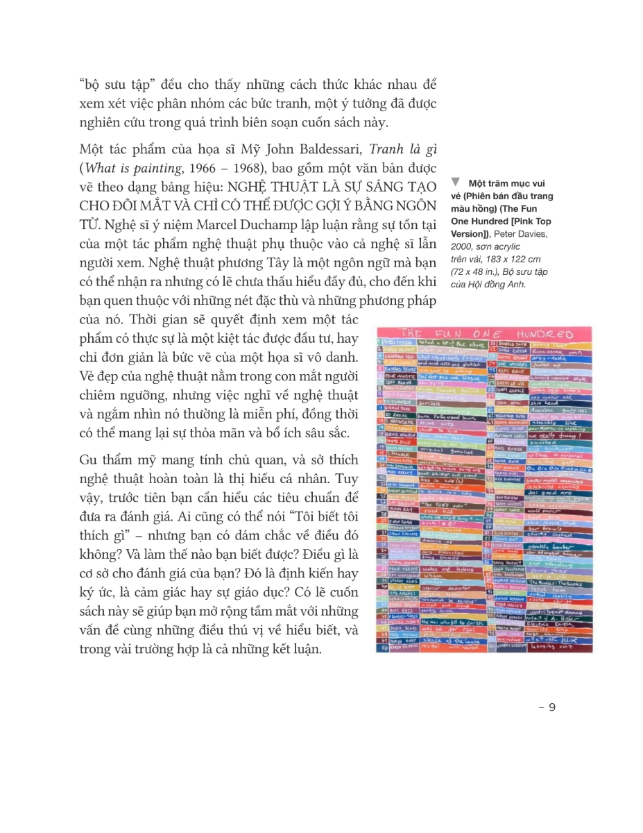Cuốn sách này là một cẩm nang ngắn gọn giới thiệu cho bạn đọc về 55 trào lưu, trường phái và phong cách thịnh hành từ thời kỳ bình minh hé sáng của nghệ thuật