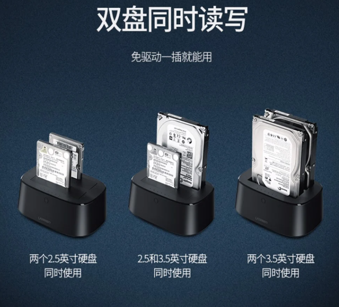 Ugreen 50857 USB 3.0 to sata đế gắn 2 ổ cứng Max 16Tb CM198 hỗ trợ nhân bản ổ cứng + UASP truy suất dữ liệu tốc độ cao - Tên sản phẩm: Dock đọc dữ