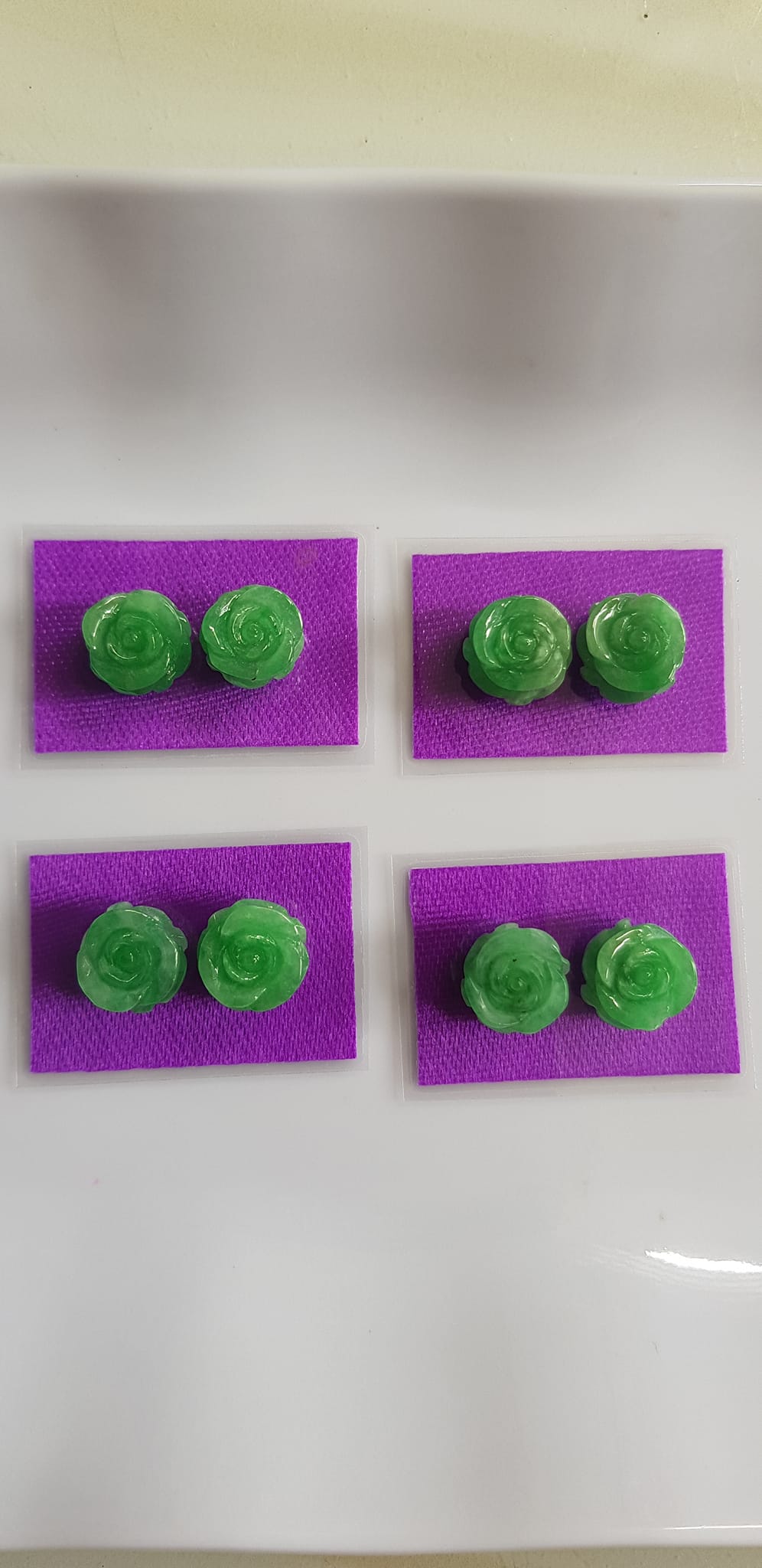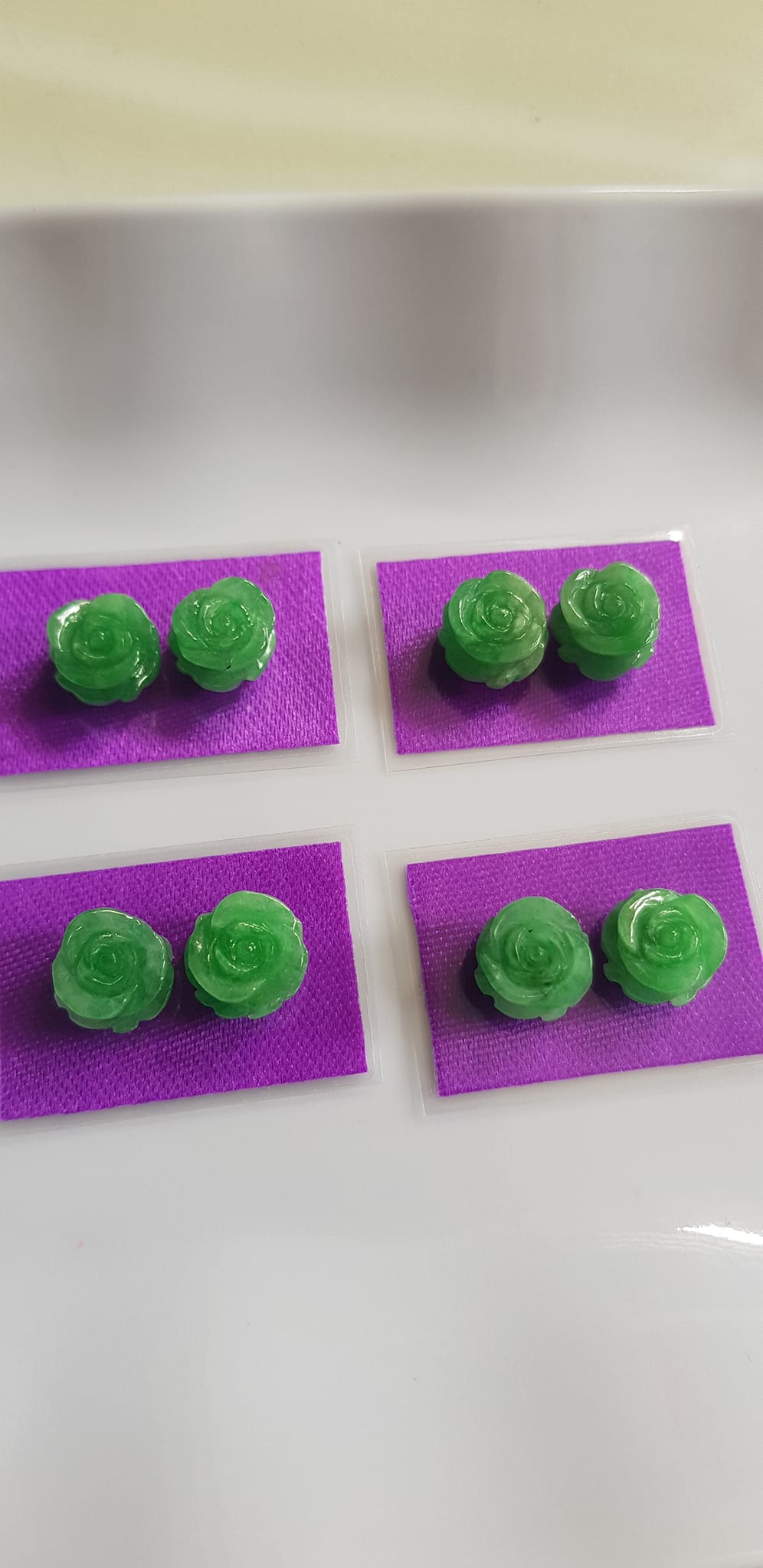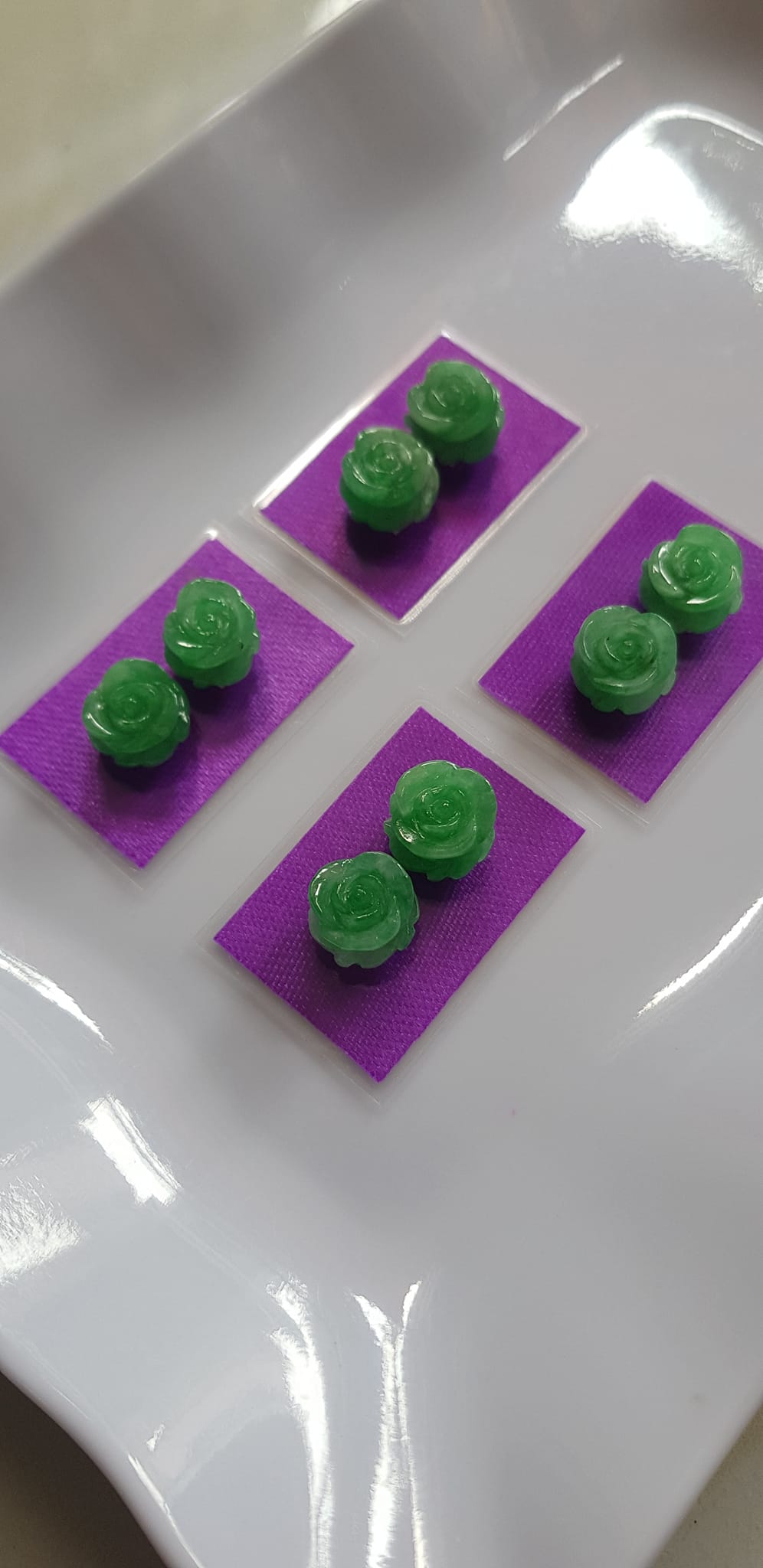 Đôi bông tai mới bông hồng nổi cao sịn đẹp xanh Ngọc tươi size đk 9,5mm x Cao 5mm Chất liệu đá ngọc cẩm thạch tự nhiên xanh ngọc tươi đều sịn bóng mượt đẹp Nữ về bọc vàng lên đeo sang lắm ạ