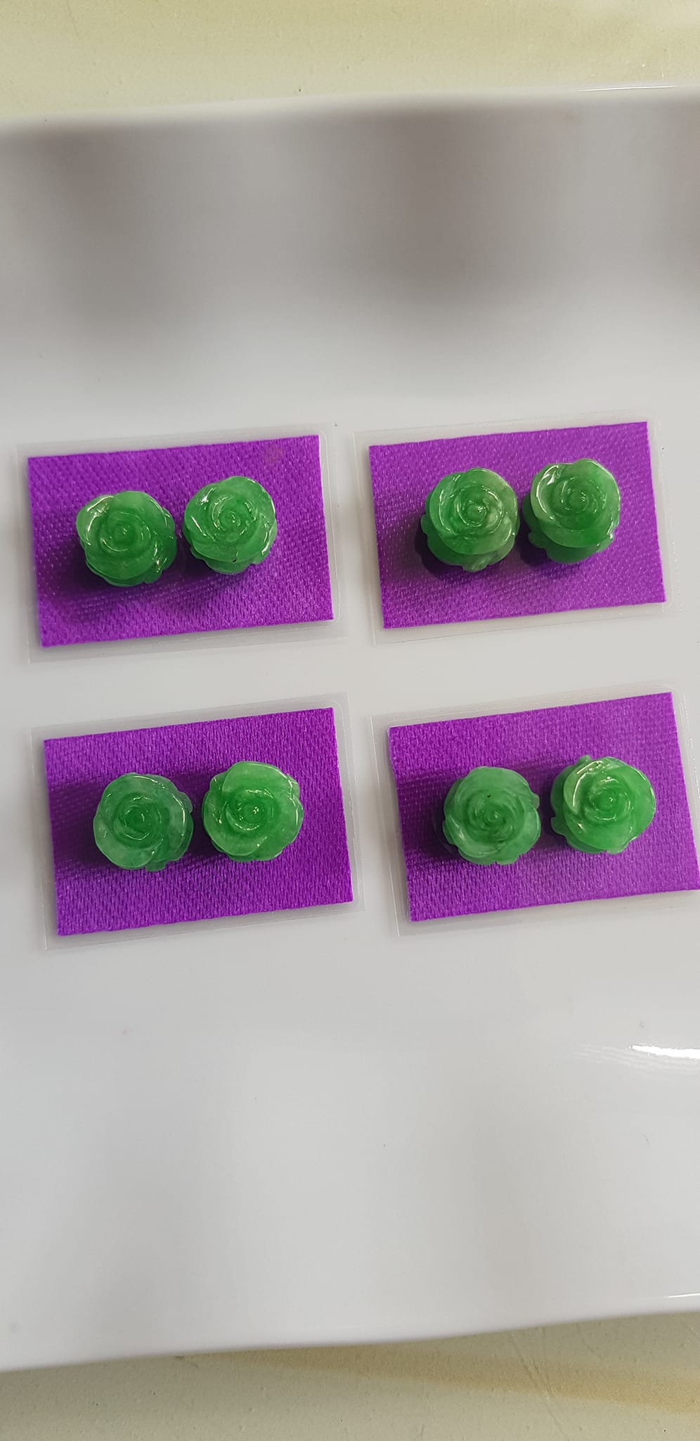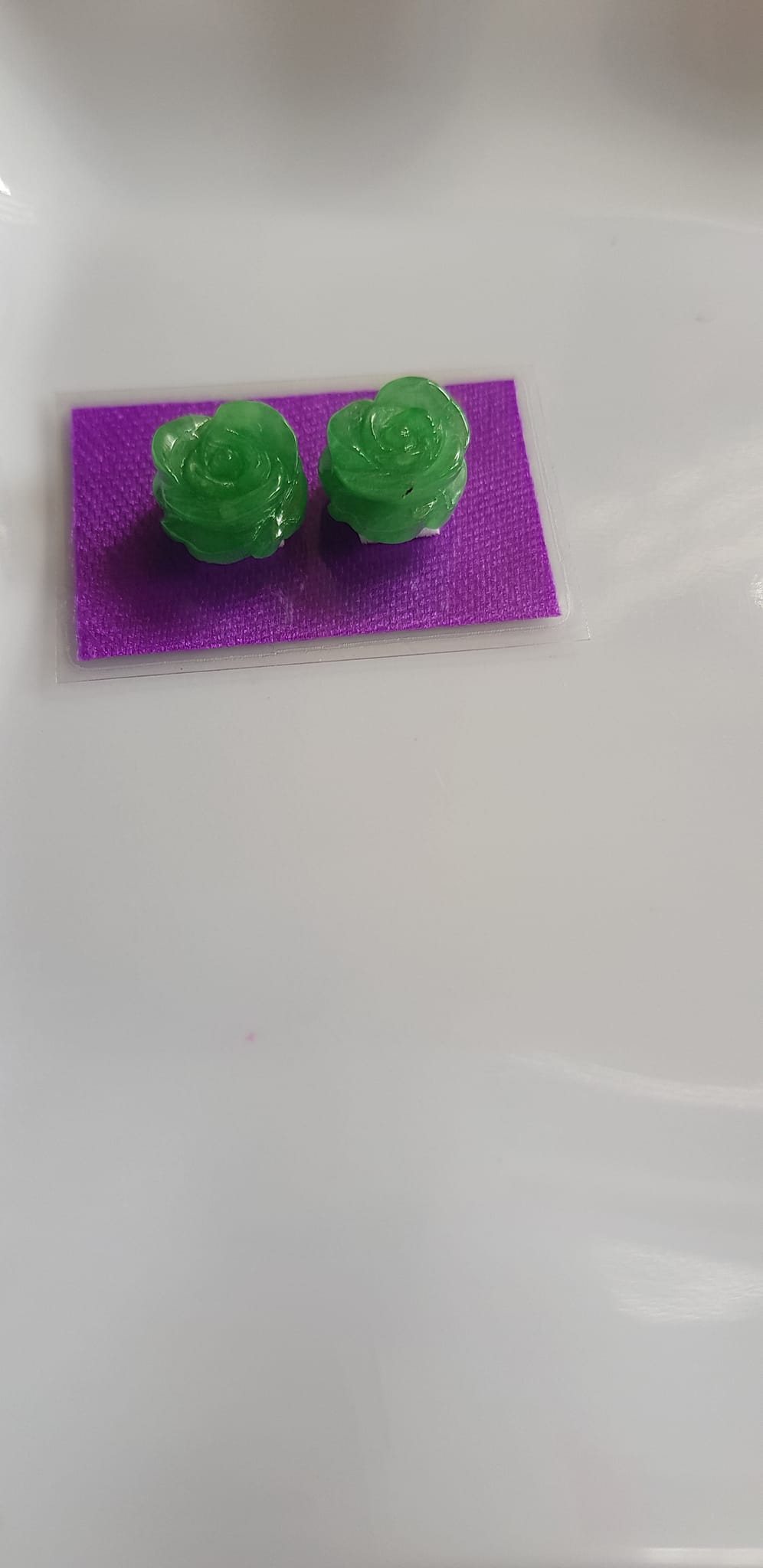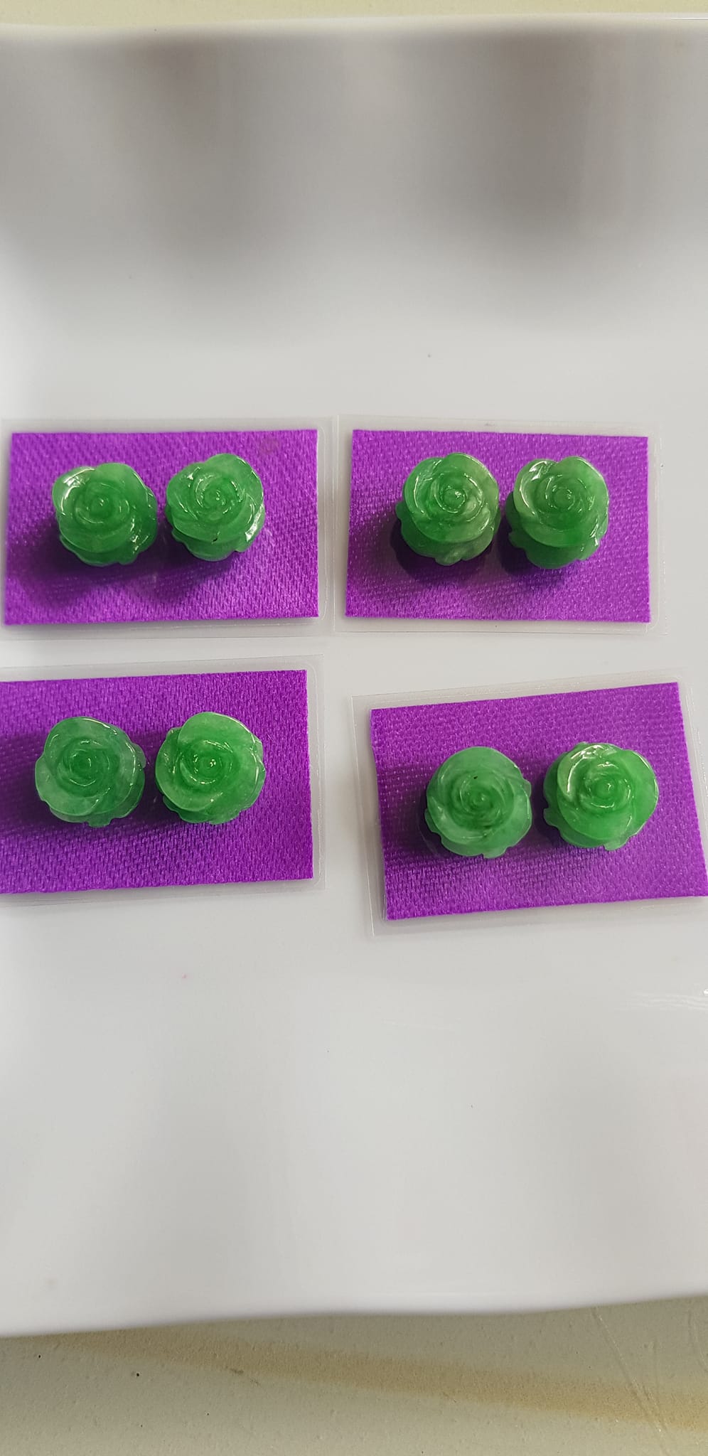 Đôi bông tai mới bông hồng nổi cao sịn đẹp xanh Ngọc tươi size đk 9,5mm x Cao 5mm Chất liệu đá ngọc cẩm thạch tự nhiên xanh ngọc tươi đều sịn bóng mượt đẹp Nữ về bọc vàng lên đeo sang lắm ạ