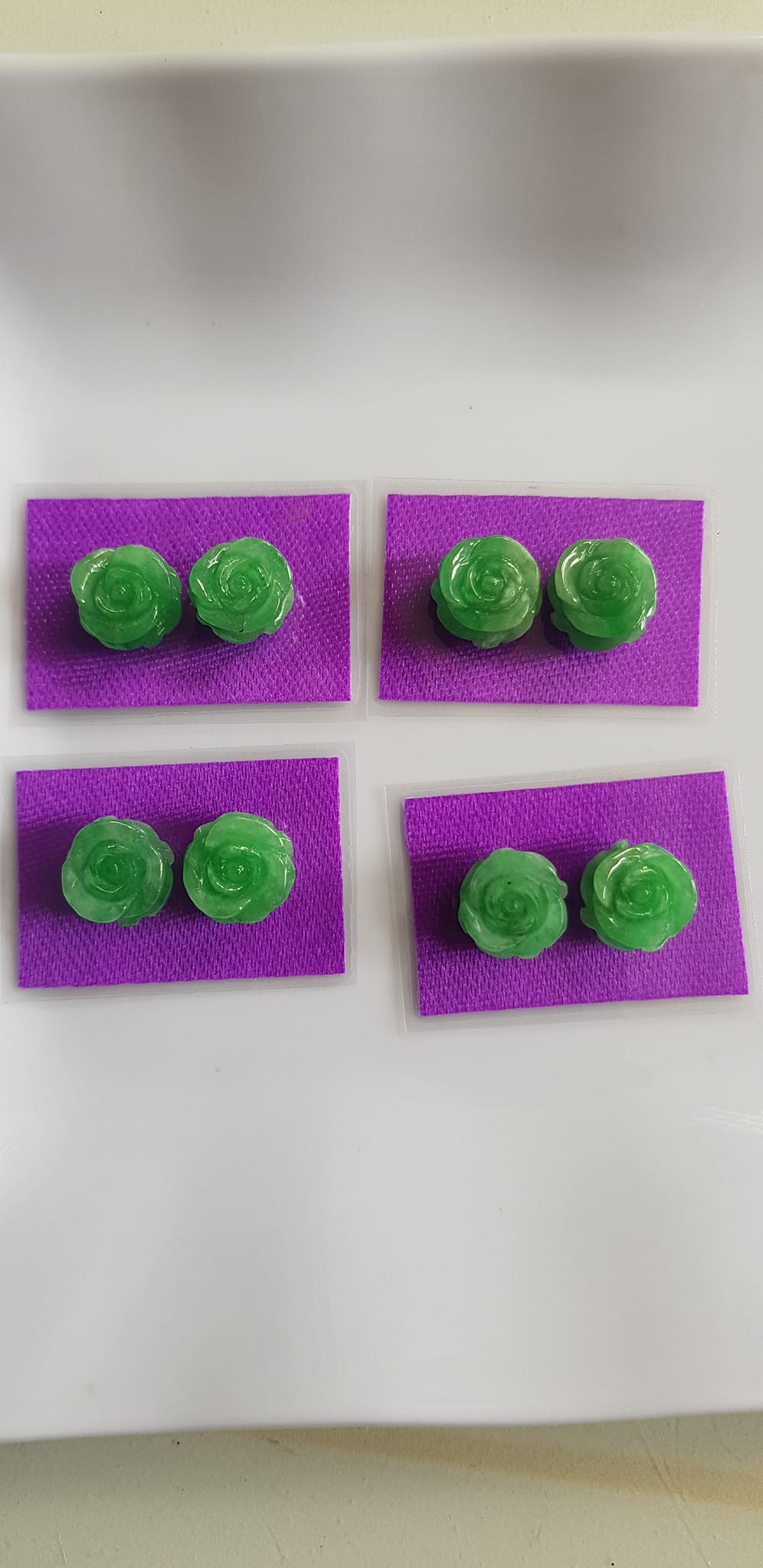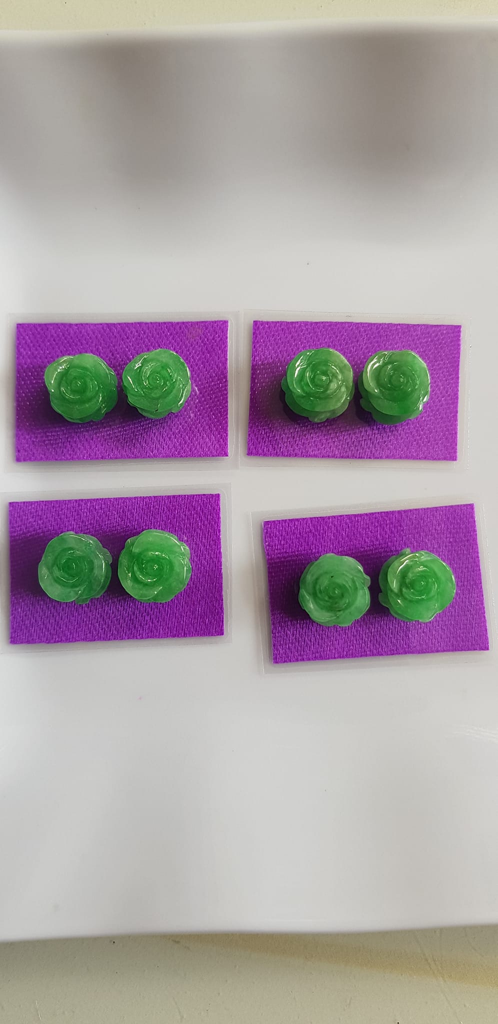 Đôi bông tai mới bông hồng nổi cao sịn đẹp xanh Ngọc tươi size đk 9,5mm x Cao 5mm Chất liệu đá ngọc cẩm thạch tự nhiên xanh ngọc tươi đều sịn bóng mượt đẹp