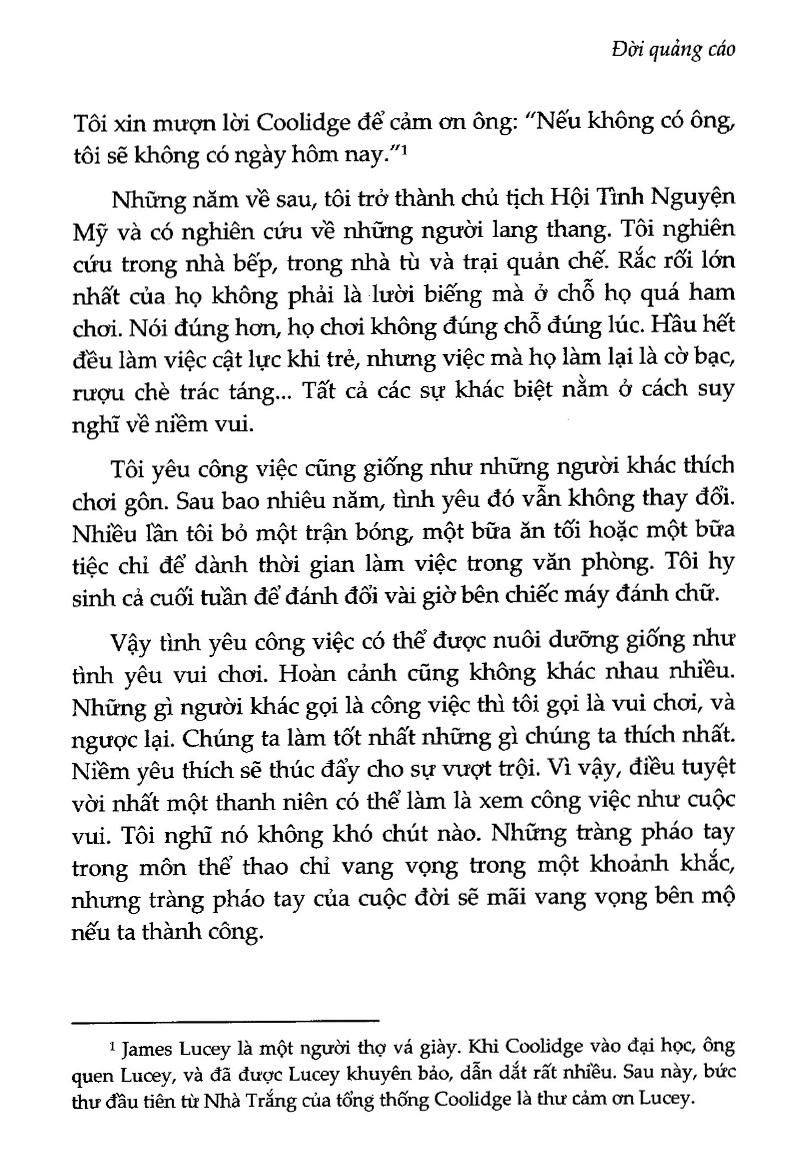 Quyển sách viết về những chiến dịch quảng cáo thực tiễn mà tác giả đã thực hiện cho các thương hiệu nổi tiếng như Palmolive, Pepsodent, Schlitz,… Đây là trải nghiệm thực tế nên không hề hàn lâm.
