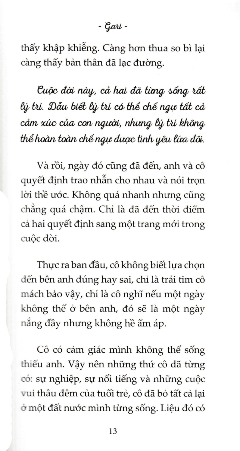 Giới thiệu tóm tắt tác phẩm: "Mọi lựa chọn đều giá trị. Mọi bước đi đều quan trọng. Cuộc sống vẫn diễn ra theo cách của nó, không phải theo cách của ta. Hãy