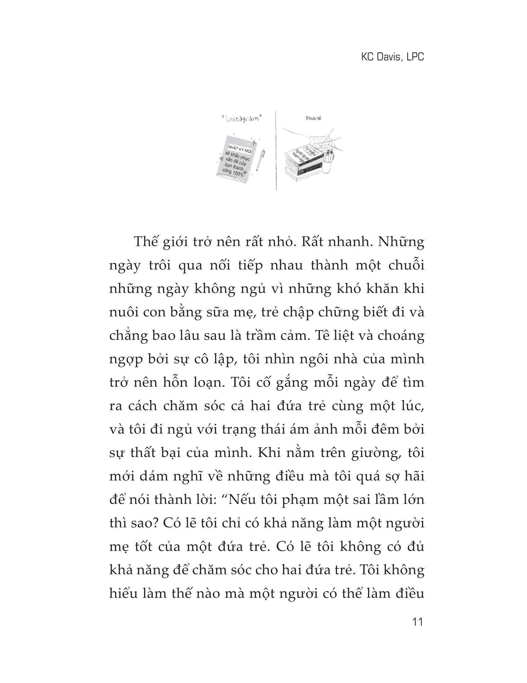 • Đưa chúng vào cuộc sống của bạn với ít nỗ lực nhất, không dựa vào việc ghét bỏ mà vào sự khoan dung với bản thân. Dọn dẹp tâm trí – thanh lọc cảm xúc sẽ giúp bạn tìm ra cách duy trì một ngôi nhà đầy đủ chức năng - bất kể “chức năng” có ý nghĩa là gì đối với bạn. Bạn sẽ xây dựng được nền tảng của sự bao dung với bản thân và học cách ngừng tự nói xấu bản thân. Sau đó, bạn sẽ có nhiều động lực bắt đầu tìm hiểu những cách để vượt qua các rào cản chức năng của m.ình. Khi bạn bắt đầu cuộc hành trình này, hãy “chậm rãi,” “yên tĩnh”, “nhẹ nhàng”. Bạn xứng đáng được yêu thương và công nhận. Đây không phải là một hành trình của sự xứng đáng mà là một hành trình của sự quan tâm. Một hành trình để học cách tự chăm sóc bản thân khi cảm thấy choáng ngợp. Về tác giả: KC Davis là một nhà trị liệu chuyên nghiệp được cấp phép, tác giả sách và diễn giả. Cô là người tạo ra nền tảng chăm sóc sức khỏe tinh thần Struggle Care, nơi cô chia sẻ cách tiếp cận mang tính cách mạng đối với việc chăm sóc bản thân và nhà cửa dành cho những người đang đối mặt với các vấn đề liên quan đến sức khỏe tinh thần, bệnh tật và những giai đoạn khó khăn trong cuộc sống. KC dành phần lớn sự nghiệp của m.ình với các vai trò như nhà trị liệu, nhà tư vấn và giám đốc điều hành.