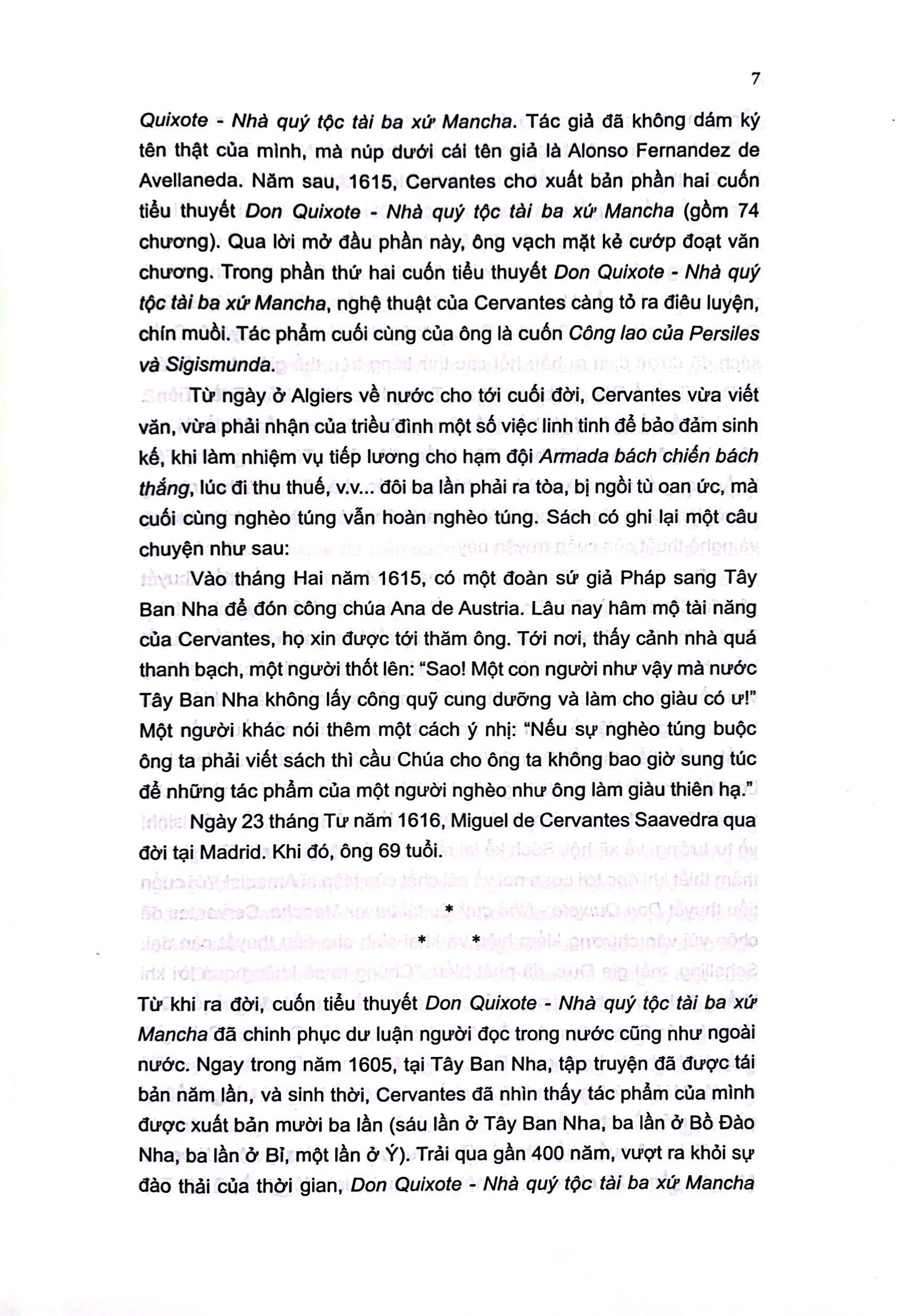 Don Quixote, tiểu thuyết hay nhất mọi thời đại, được dịch ra nhiều thứ tiếng nhất và được tái bản nhiều nhất trong lịch sử nhân loại, chỉ sau Kinh Thánh.