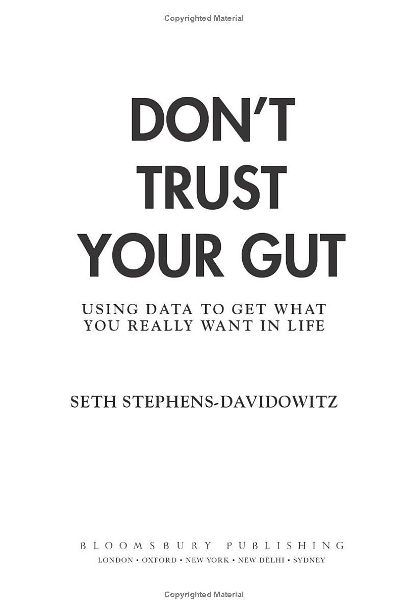 "Seth Stephens-Davidowitz is more than a data scientist. He is a prophet for how to use the data revolution to reimagine your life. Don’t Trust Your Gut is a tour de force—an intoxicating blend of analysis, humor, and humanity.” — Daniel H. Pink, #1 New York Times bestselling author of When, Drive, and To Sell Is Human