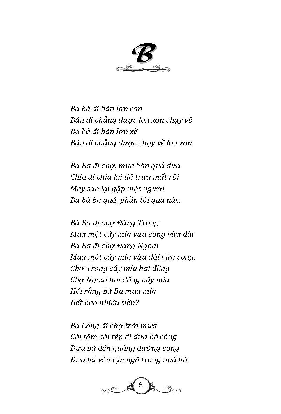 Tuyển tập thơ ca dân gian với những câu hát, câu thơ có vần điệu vui tai được truyền miệng từ đời này qua đời khác, giúp con trẻ phát triển trí tuệ, kích thích