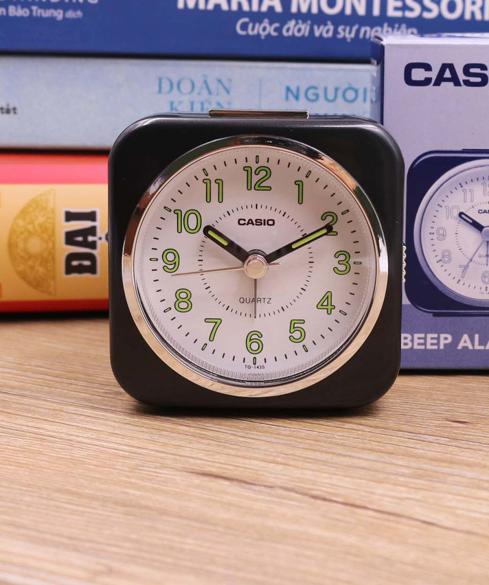 Đồng hồ báo thức để bàn Casio TQ-143S-1DF có thiết kế đơn giản thanh lịch và nhỏ gọn hiện thị đầy đủ tính năng xem giờ, báo thức có dạ quang trên mặt số và
