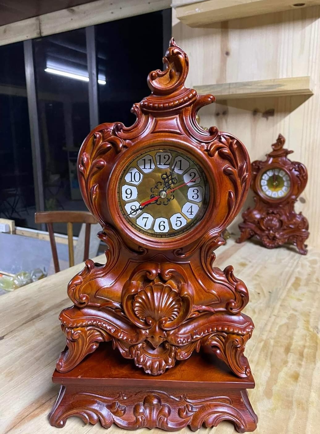 ✨Đồng hồ để bàn phong thủy ,hoàng gia khắc hoa la tây tân cổ điển bằng gỗ hương kt 46×27×13cm
