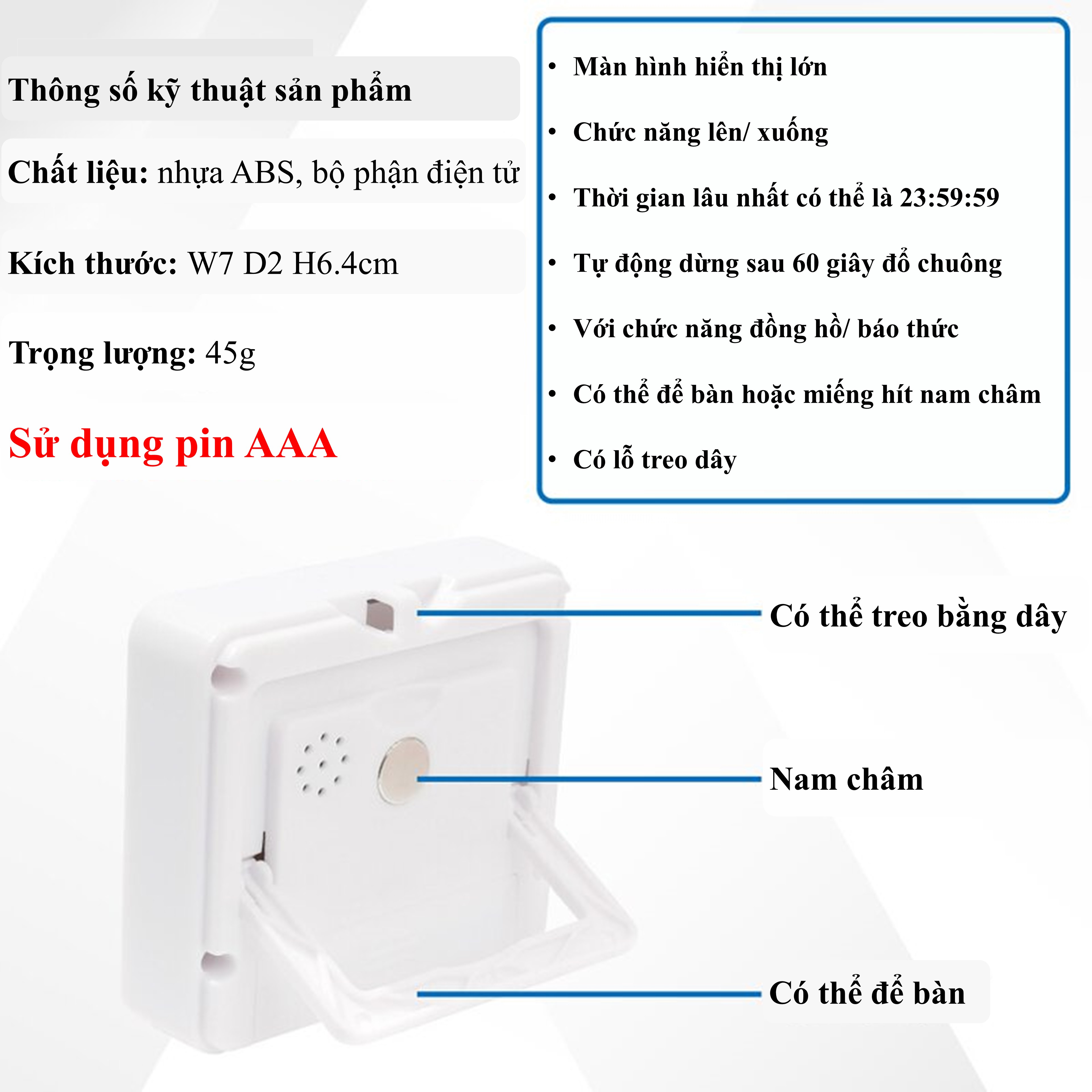 Đồng hồ bấm giờ đếm ngược điện tử mini V3 - Hẹn giờ, đếm ngược thời gian (timer) với độ chính xác đến từng giây, màn hình lớn hiển thị rõ ràng, nút bấm dễ dàng