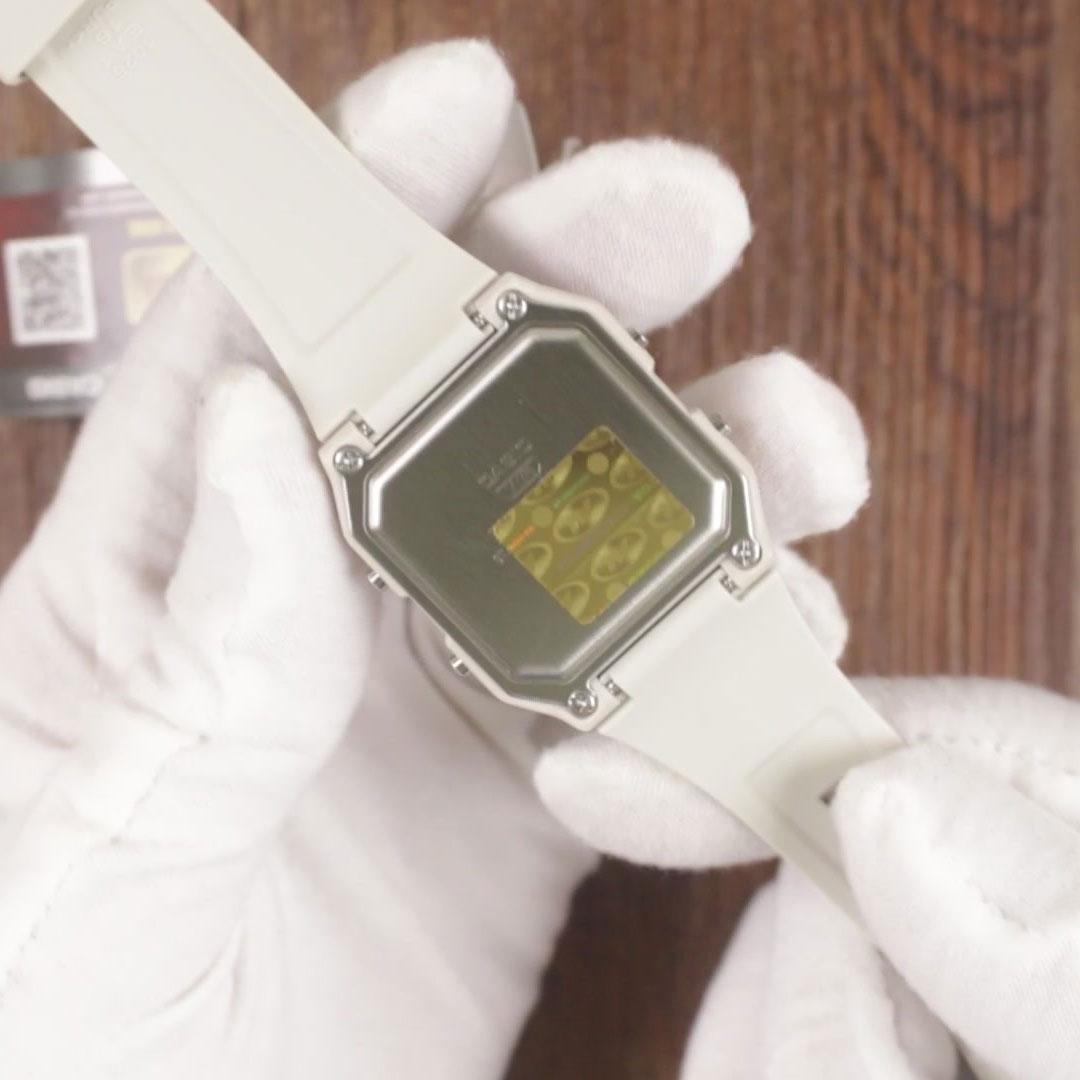 Thông số kỹ thuật - Vật liệu vỏ / vành bezel: Nhựa - Dây đeo bằng nhựa - Mặt kính nhựa - Khả năng chống nước ở độ sâu 50 mét - Đèn LED cực tím - Độ chính xác: ±30 giây một tháng - Tuổi thọ pin xấp xỉ: 7 năm với pin CR2016 - Kích thước vỏ : 46×43,8×11,3mm - Tổng trọng lượng : 35g