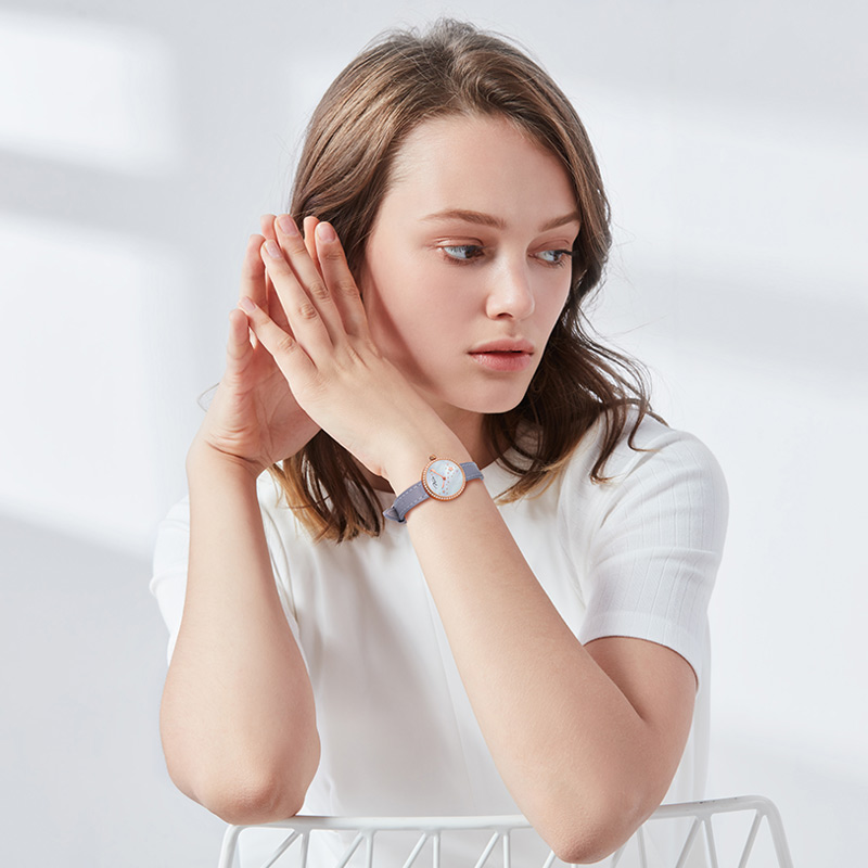 Mang trên mình vẻ ngoài mượt mà và phong cách với dây da màu pastel mờ. Chiếc đồng hồ còn có thêm màu đơn sắc sành điệu và có khả năng chống nước để bạn