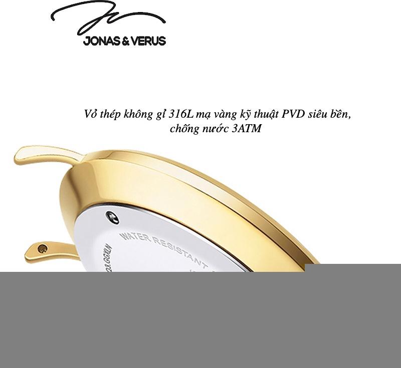 Đồng hồ đeo tay nữ hiệu JONAS & VERUS, mã số X00719-Q3.WWWLRD Dây da Italy mềm mại nổi bật hơn với viền mặt đính đá Swarovski,là một trong nhiều những chiếc đồng hồ Jonas &