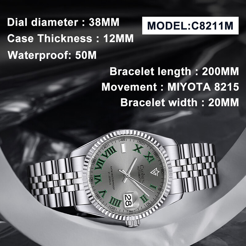 Mua tại Tiktok Thương Hiệu CADISEN Quốc gia đăng ký thương hiệu Nhật Bản Kiểu máy Nhật Bản (Japan Movt) Mã sản phẩm C8214M3 Giới tính Nam Loại sản phẩm Đồng hồ cơ (Automatic) Đường kính