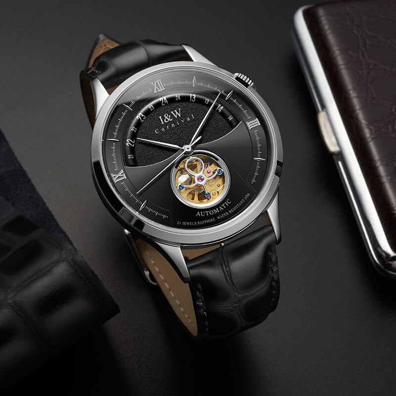 IW CARNIVAL IW525G-6 được hãng thiết kế mang phong cách cổ điển, mặt đen làm chủ đạo, được nhiều người yêu thích. Thiết kế lộ cơ đăng cấp của IW CARNIVAL IW525G-6 khoe ra bộ máy bên trong, khẳng định khả năng chế tác đồng hồ của một trong những thương hiệu hàng đầu của Thụy Sỹ.