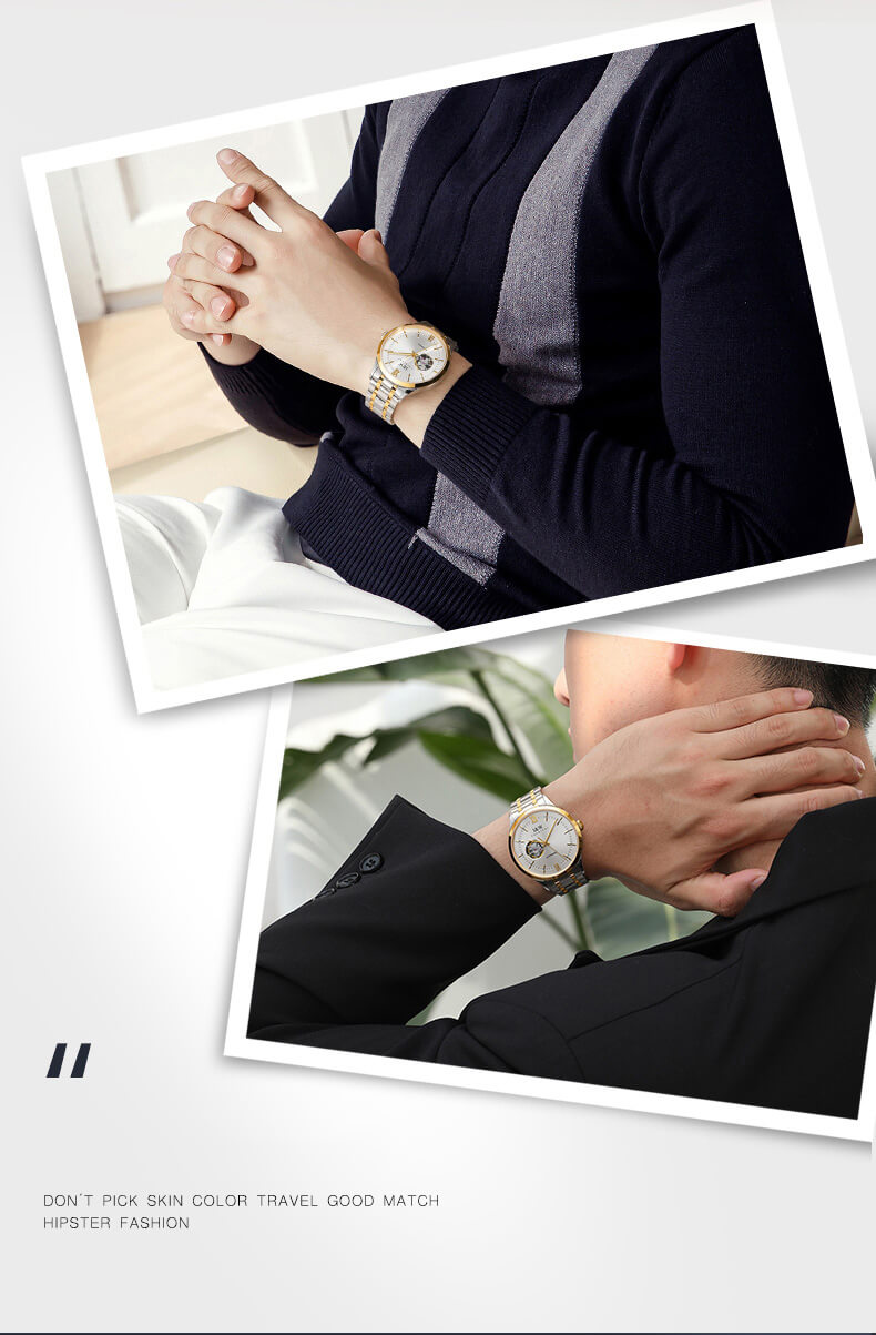 Đồng hồ cơ nam AOKULASIC với vỏ ngoài được gia công bằng chất liệu hợp kim thép chống gỉ tạo nên vẻ sang trọng, lịch lãm cho phái mạnh VẬN HÀNH BỀN BỈ: với công