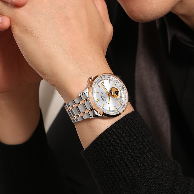 Đồng hồ cơ nam AOKULASIC với vỏ ngoài được gia công bằng chất liệu hợp kim thép chống gỉ tạo nên vẻ sang trọng, lịch lãm cho phái mạnh VẬN HÀNH BỀN BỈ: với công