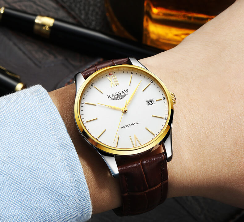 Mua tại TiktokĐồng hồ nam chính hãng Kassaw Thụy Sỹ Thiết kế sang trọng, đẳng cấp cho quý ông Thời gian trữ cót lâu lên đến 40h Chống nước 5ATM, Kính sapphire Toàn bộ máy được làm từ thép không gỉ 316L Đồng hồ cơ Automatic, Sử dụng bộ máy Seiko NH35A Chính hãng
