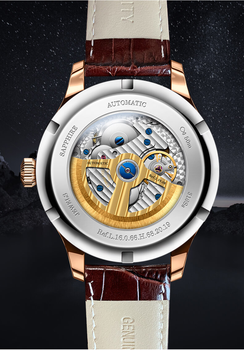 NGUỒN GỐC VÀ THÔNG SỐ SẢN PHẨM Thương Hiệu LOBINNI Mã sản phẩm L13022-1 Giới tính Nam Loại sản phẩm Đồng hồ Automatic Đường kính mặt 41 mm Chiều dày 11,5 mm Chất liệu vỏ