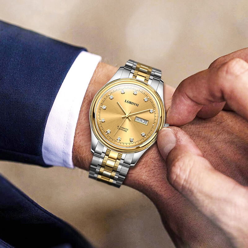 Đồng hồ nam chính hãng LOBINNI Thụy Sỹ Thiết kế sang trọng, đẳng cấp cho quý ông Thời gian trữ cót lâu lên đến 40h Chống nước 5ATM, Kính sapphire Toàn bộ máy được làm