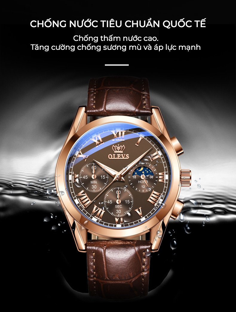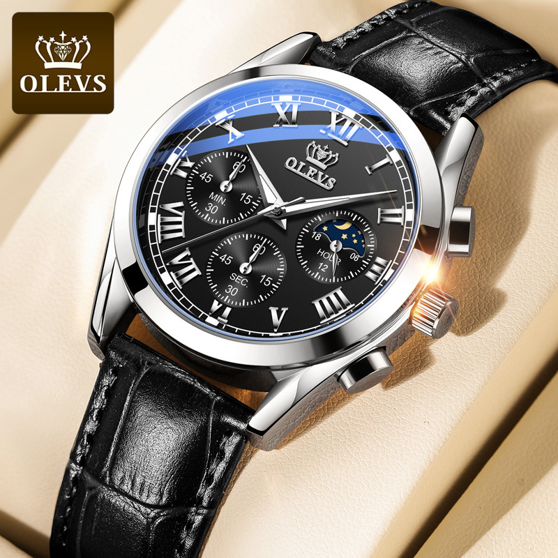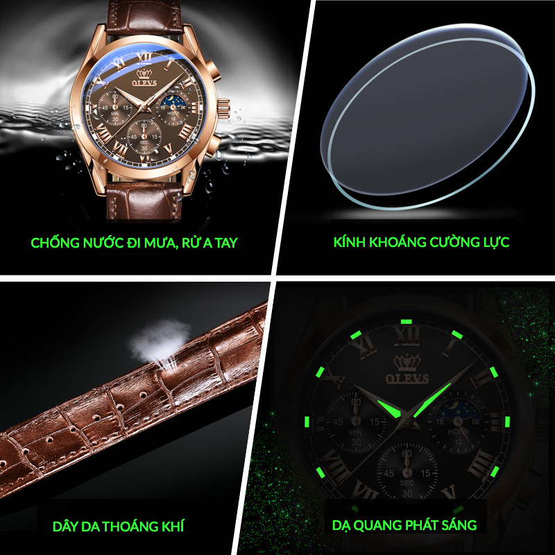 Đồng Hồ Nam OLEVS-2871 Phong Cách Doanh Nhân - Lịch Trăng Sao - Chạy Đủ 6 Kim - Hàng Chính Hãng