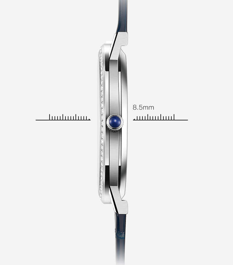 ĐẶC ĐIỂM NỔI BẬT Mã sản phẩm No.3033 Giới tính Nữ Kiểu máy Quartz ( Chạy pin ) Đường kính mặt 34 mm Độ dày 9,5 mm Chất liệu vỏ Thép không gỉ 316L Chất liệu dây Dây da cao cấp Chất