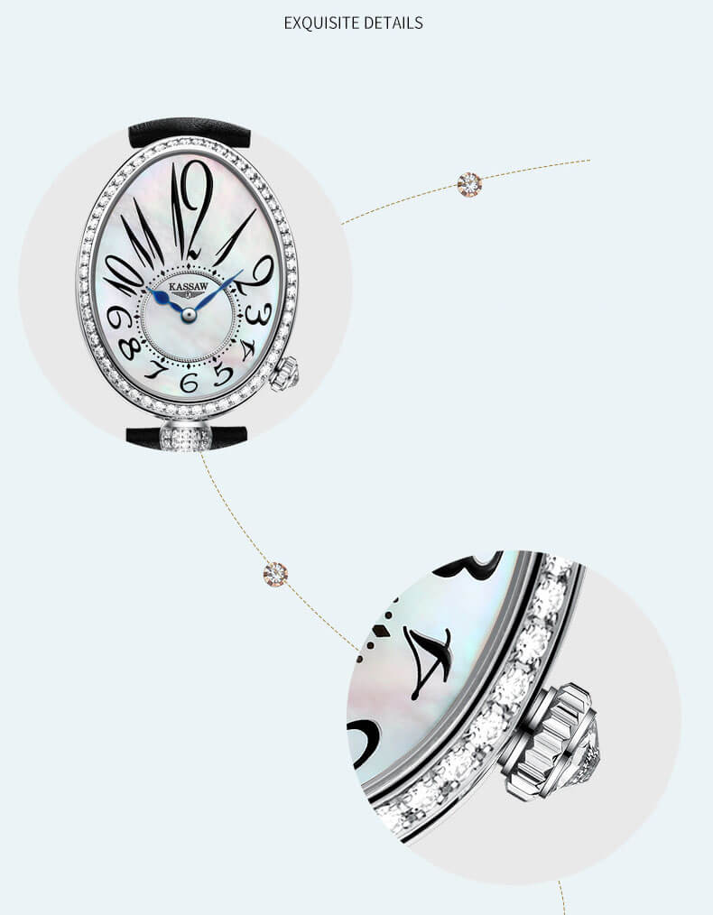 Đồng hồ nữ chính hãng Kassaw Thụy Sỹ Thiết kế hiện đại,sang trọng dành cho phái nữ Thời gian trữ cót lâu lên đến 40h Chống nước 5ATM, Kính sapphire Toàn bộ máy được làm